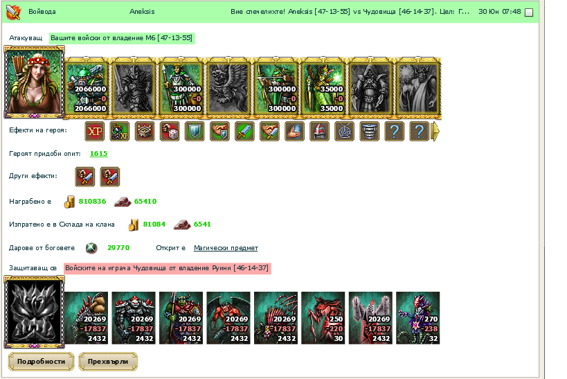 Лорд Анексис, Лорд Анексис - Ставайте, открих руината от историята, която ми разказвахте като дете. Анексис се изправи и се разлюля ,още под влияние на рома който беше изпил по рано вечерта. Той стана отвори врата и не каза нищо ,само се усмихна и поздрави Момо като го потупа по рамото. Попита го с набръчкани вежди , опитвайки се да избистри мисълта - Видя ли Героя чудовище? Не , нямах толкова време бързах да се прибера ,защото на отиване едва успях да изпреваря проучвателя ,на Тъмния Елф който броди из нашите територии - каза Момо и остана да се чуди как ли се казва този страшен Герои . Като чу за Тъмния Елф, лорда извика на помощ отряд Шпиони, които се обучаваха в специални Шпионски Гилдии именно за тази цел .През това време Лорд Анексис извика при себе си Фин, и му заповяда да използва най-елитната част от армията, с която навремето се сражаваха ,докато бяха още във именития клан на Варварите. Шпионския отряд се върна и даде точна информация на Лорда за чудовищата , тогава той се обърна към своя Военно-началник и каза - На добър път верни приятелю , вземи от съкровищницата артефактите окичени със руни , те ще Ви дават допълнителна атака и здраве във битката , и да донесете всичкото съкровище ,да не го разпилеете по път - пошегува се Анексис . Фин подбра няколко Джуджета-адютанти които трябваше да носят съкровището на връщане , древни Кентавъри които бяха отлични преследвачи на Железния Голем от отряда на чудовищата , и разбира се Елитните Рейнджъри , също така реши да вземе и няколко Повелителници на Живота , те бяха част от медицинския екип в битките ,срещу други Лордове или Чудовища и потеглиха на път.